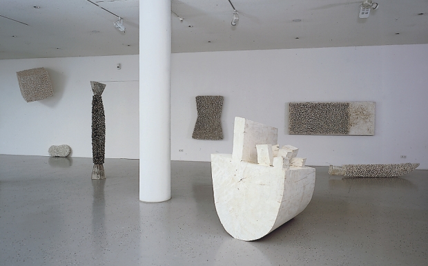 Die Ausstellung stellt aus dem skulpturalen Schaffen von Willi Siber verschiedene Werkgruppen vor, die in jeweils unterschiedlicher Weise auf den Raum – das zentrale Anliegen bei Siber – einwirken. Obgleich an Wand und Boden gebunden, sind Willi Sibers poröse Holztafeln, -elemente und –behältnisse autonome Gebilde, die sich dem Raum passiv und aktiv öffnen, die Prinzipien von Ordnung und Auflösung verbinden; sie agieren und reagieren, nehmen Raum auf und geben Raum ab, sie lassen den Raum sich durchdringen und sie gehen in den Raum über – als Raumnahrung. Bei der Bearbeitung seiner Skulpturen mit der Kettensäge reduziert Siber die gewachsene Holzmaserung, verfremdet das Naturhafte des Holzes und verspachtelt die naturgegebene Holzstruktur mit einer Mischung aus Farbe und Leim. Jeder Bezug zu Tradition und Herkunft wird auf diese Weise bewußt nivelliert. Siber verwandelt seine Skulpturen gleichsam zu plastischen Malkörpern, deren oftmals zarte Farbigkeit den Eindruck von Patina vermitteln.