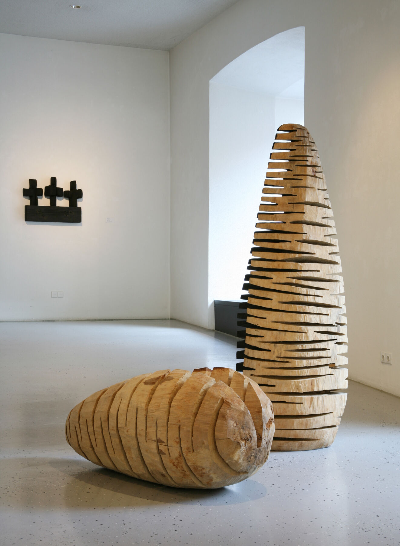 Die Arbeiten richten das Augenmerk vor allem auf Nashs Auseinandersetzung mit den Themen Natur und Wachstum, Vergänglichkeit und Spiritualität. Dies kommt zum einen schon im Ausstellungstitel zum Ausdruck: Er thematisiert die natürlichen plastischen Dimensionen im Wachstum von Bäumen – das der Stämme, der Äste und Wurzeln. Anschaulich werden so Nashs Denk- und Arbeitsprinzipien, die Kunst in die Natur und deren Wachstumsprozesse zurückkehren lassen. Zum anderen zeigen sich Nashs künstlerische Ansätze und Vorstellungen auch in der Ausstellungskonzeption, in die nicht nur der Galerieraum einbezogen ist: Die Arbeiten im einstigen Langhaus der ehemaligen Dominikanerkirche stehen darüber hinaus im unmittelbaren Dialog mit Skulpturen, die vis à vis auch in der Johanniskirche zu sehen sind – der spätromanischen, ältesten noch erhaltenen Kirche Gmünds. Die Verbindung zwischen beiden Ausstellungsräumen vermittelt eine Kugel-Skulptur, die während der Ausstellungsdauer auf dem Johannisplatz präsent ist.