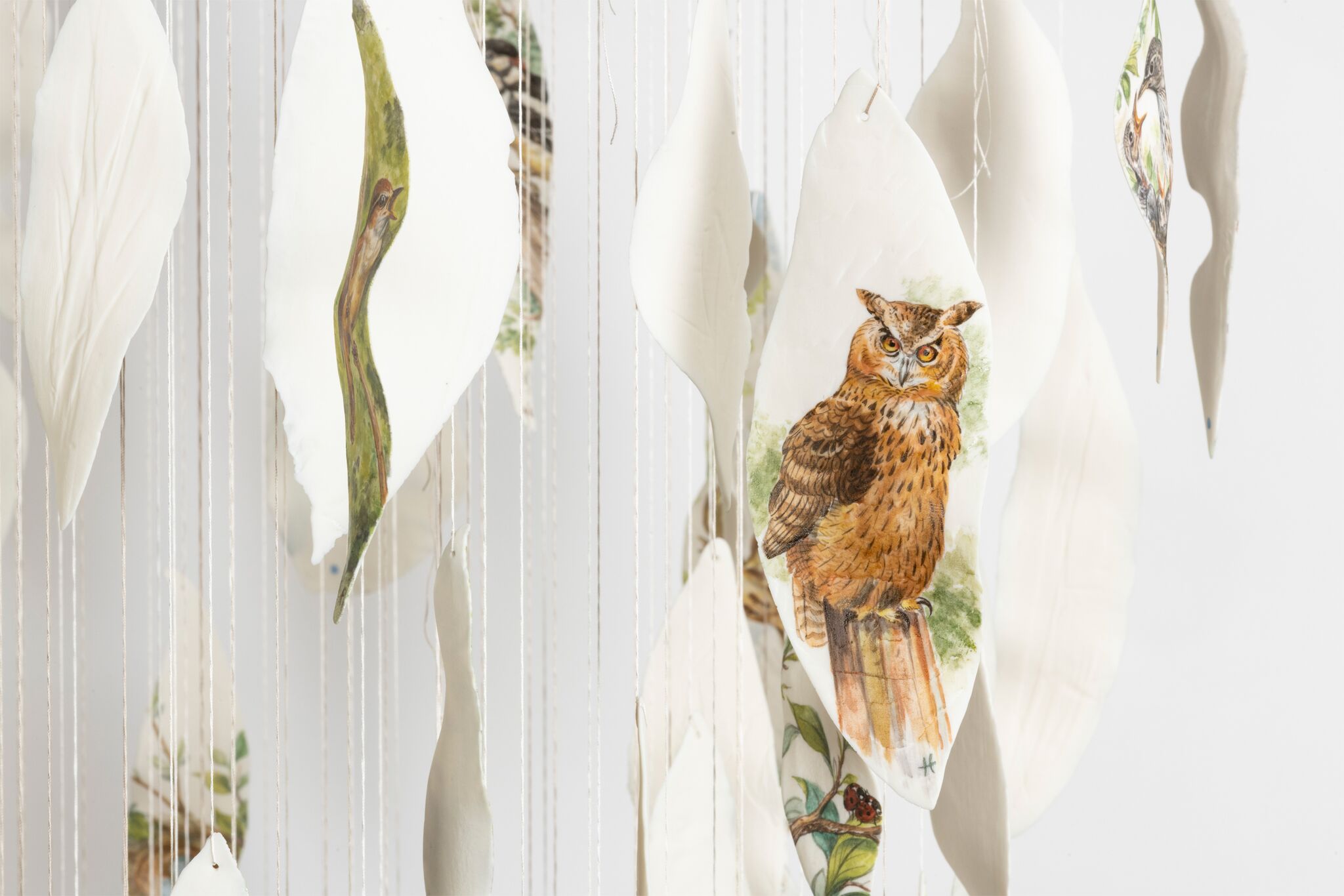 Annette Lechler, Karlsruhe, Staatspreis: andernorts – comme une onde, offene Schalenverkettung, wandelbar, Birke und Faden, Länge max. ca. 100 cm. © Künstlerin, Foto: Frank Kleinbach