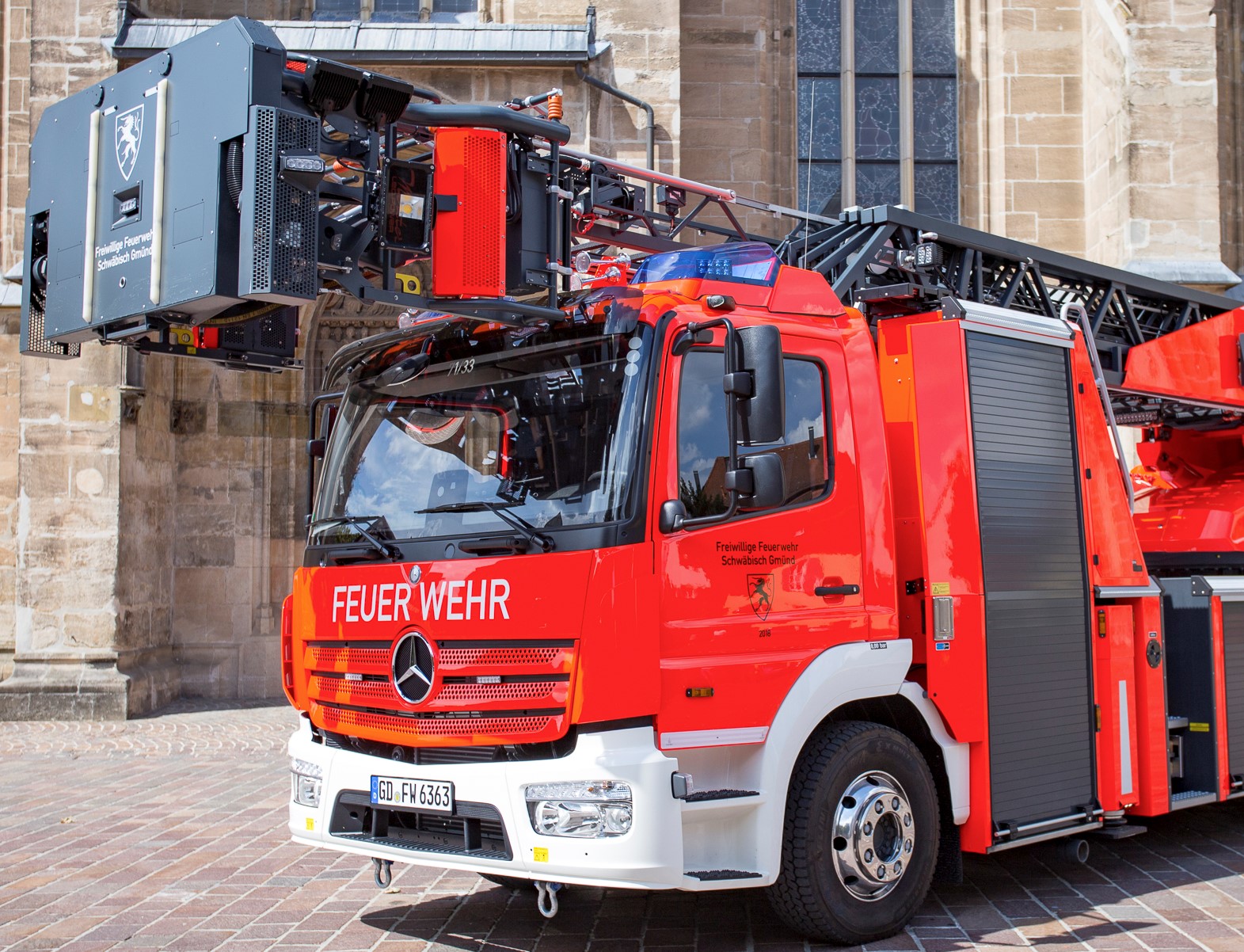 Die Drehleiter der Feuerwehr wurde vom Rettungsdienst zur Unterstützung bei einer Patientenrettung aus dem Obergeschoss angefordert.