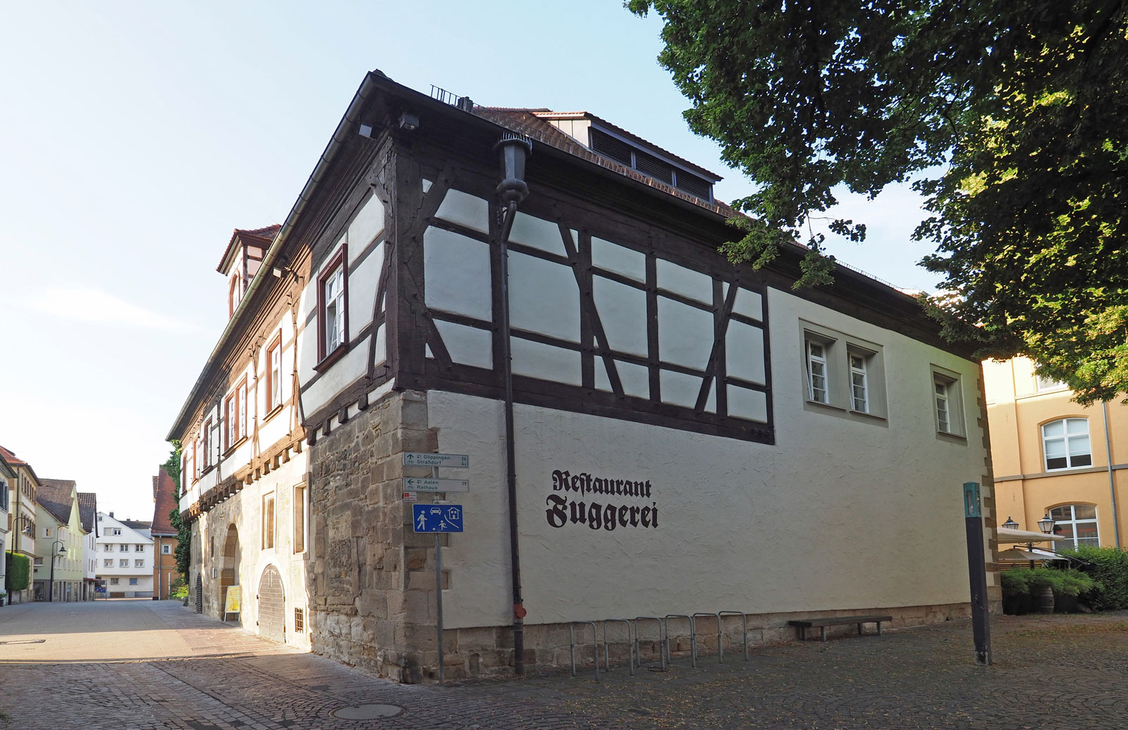 Die Fuggerei ist eines der ältesten erhaltenen Steinhäuser der Stadt mit romanischen Mauerresten. Nach einem Brand 1985 wurde die „Fuggerei“ wieder hergestellt, seit 1980 ist hier ein Restaurant untergebracht.