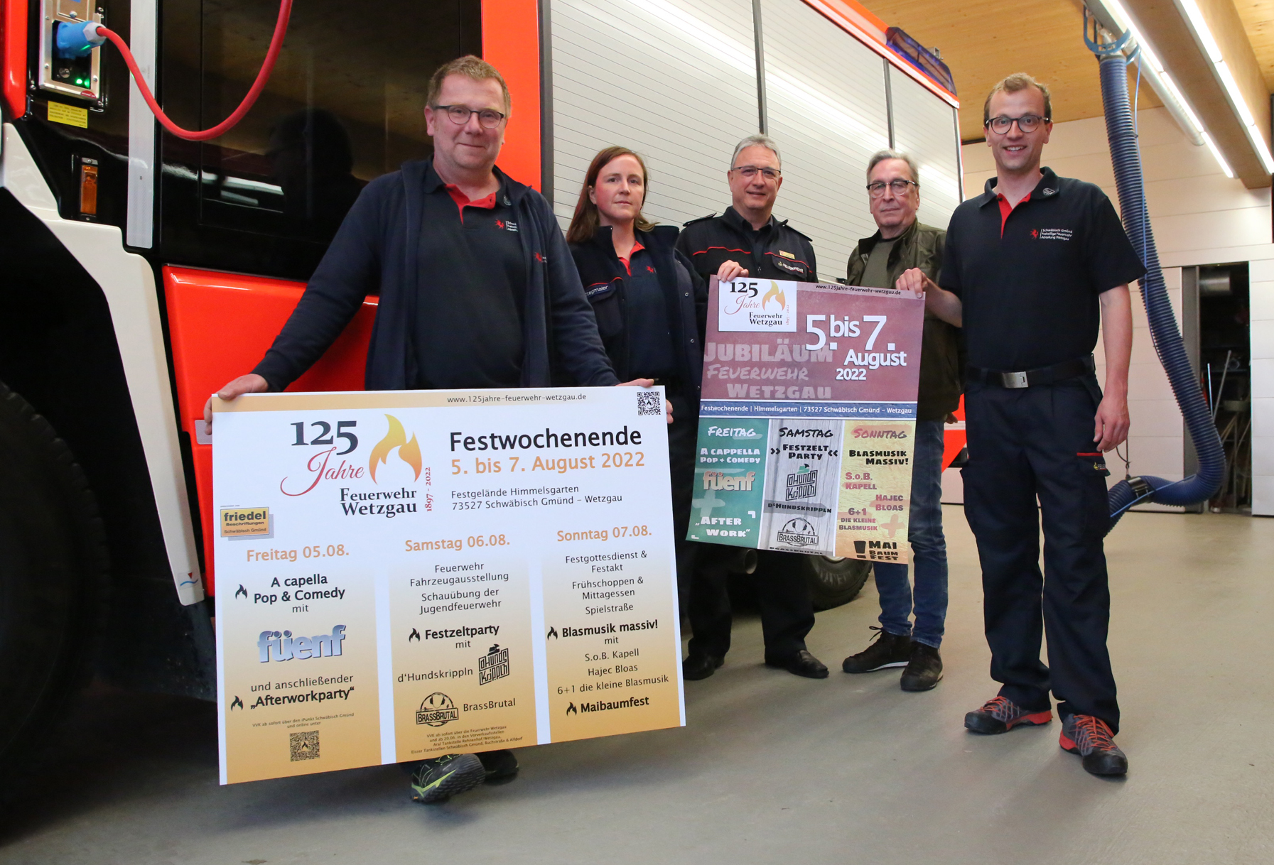 Schwäbisch Gmünd (sv). Die Feuerwehr Wetzgau feiert 125-jähriges Jubiläum vom 5. bis 7. August im Himmelsgarten. Mit einem dreitägigen Festakt wird das Gründungsjahr 1897 der Feuerwehr Wetzgau mit einem attraktiven Programm und Festzelt gefeiert. Dazu sind alle Bürgerinnen und Bürger, sowie die ganze Feuerwehr- und Blaulichtfamilie aus Schwäbisch Gmünd und Umgebung herzlich eingeladen. Zusätzlich findet am Sonntag, 7. August, die große Maibaumprämierung im Festzelt statt. Im Jubiläumsjahr finden weitere Aktionen statt; Brandschutzerziehung und Kooperationen mit den umliegenden Kindergärten in Wetzgau. „Einsatz der besonderen Art“, Spenden an die Kindergärten, sowie Beteiligung am Schulfest der Friedensschule.
