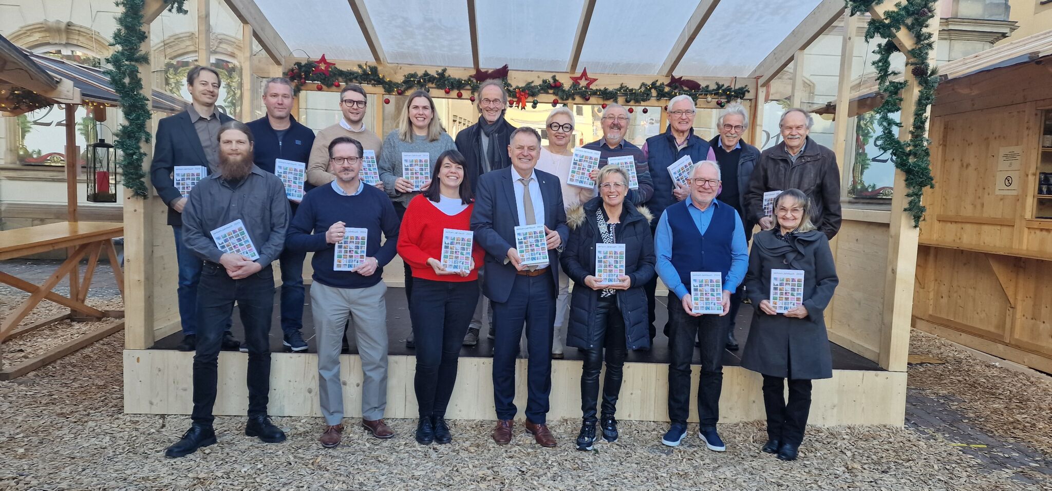 Schwäbisch Gmünd (sv/einhorn-Verlag). Zum 50. Jubiläum des einhorn Jahrbuches Schwäbisch Gmünd hat der einhorn-Verlag den Almanach 2024 in einer besondere Jubiläumsausgabe veröffentlicht. In Hommage an die Erstausgabe von 1974 präsentiert sie sich in einem leinengeprägten Festeinband im Retro-Look, der in einem farbigen Raster Gmünder Stadtansichten zeigt. Oberbürgermeister Richard Arnold bedankte sich am Donnerstag, 5. Dezember, im Barockzimmer des Gmünder Rathauses, für die gelungene Jubiläumsausgabe beim einhorn-Verlag und bei allen Autorinnen und Autoren. Im Rahmen einer kleinen Feier wurde die 50.ste Ausgabe gemeinsam gefeiert.