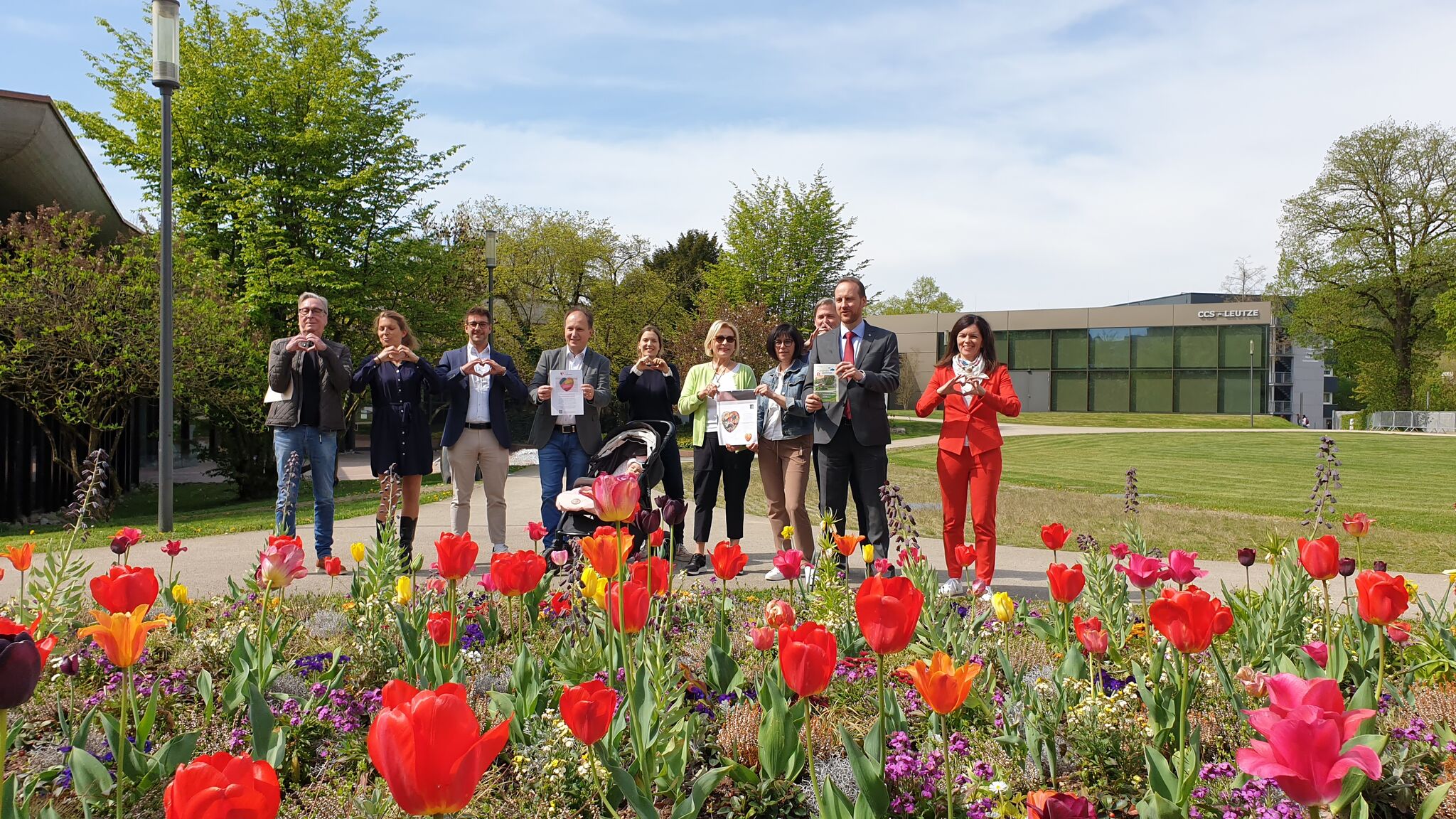 Hans-Peter Spitznagel, Touristik- und Marketing GmbH, Susanne Wolf und Jonas Grill, Congress-Centrum Stadtgarten, Ralph Häcker, Kulturamtsleiter, Katharina Stopper, KinderHerzen, Gundi Mertens, Verein Staufersaga, Carmen Bäuml, Touristik- und Marketing GmbH, Markus Herrmann, Geschäftsführer Touristik- und Marketing, Erster Bürgermeister Christian Baron und Ramona Kunz-Glass, Stadtverband Musik und Gesang.