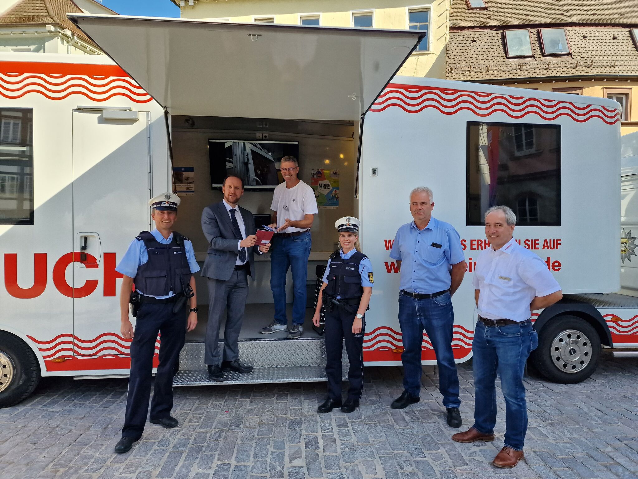 Schwäbisch Gmünd (sv). Mit dem großen K-EINBRUCH-Mobil informierte das Polizeipräsidium Aalen die interessierte Bürgerschaft am Mittwoch, 11. Oktober, auf dem Marktplatz über die Möglichkeiten zum Einbruchschutz. Viele interessierte Hausbesitzer nutzten die Gelegenheit, sich aus erster Hand von Reiner Klotzbücher und seinen Kollegen über die aktuellen Möglichkeiten zur Verhinderung von Wohnungseinbrüchen zu informieren.