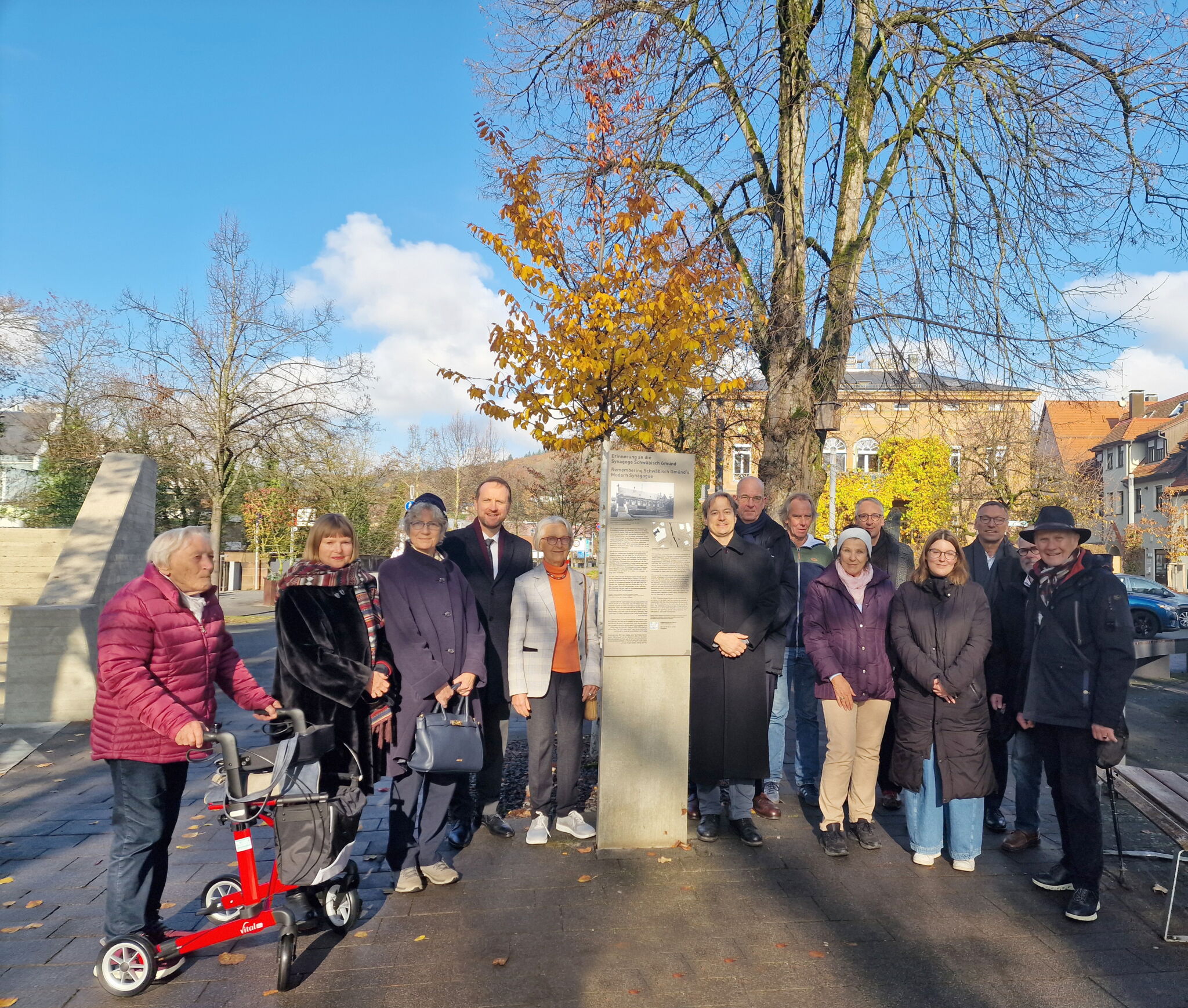 Das „Zeichen der Erinnerung“ war 2015 auf Initiative und Finanzierung der damaligen Kreissparkasse Ostalb entstanden. Es erinnert an die 1926 geweihte Synagoge, die während der NS-Zeit verwüstet und 1955 abgebrochen wurde. Der 100. Jahrestag der Synagogeneinweihung wird im Mai 2026 mit einer eigenen Gedenkveranstaltung begangen, kündigte Stadtarchivar Dr. Niklas Konzen an. Über den QR-Code an der Stele erhält man weitere Informationen der jüdischen Geschichte der Stadt Schwäbisch Gmünd.