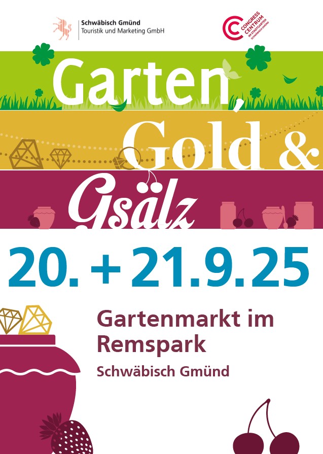 Schwäbisch Gmünd (sv). Die bunte Messe „Garten, Gold & Gsälz“ bietet am Samstag, 20. September, und Sonntag, 21. September, viel Interessantes für Garten- und Schmuckliebhaber sowie Anhänger regionaler Produkte. Über 110 Aussteller sorgen für eine vielfältige Auswahl und eine tolle Atmosphäre. Jeweils von 10 bis 18 Uhr kann man sich viele Tipps und Anregungen holen. Die Besucher erwartet eine üppige Vielfalt an Pflanzen, die neuesten Gartentrends und stilvolle Wohnideen und Accessoires. Ein Themenschwerpunkt dieser Veranstaltung ist es, den Besuchern Angebote und Produkte aus unserer Region näher zu bringen.