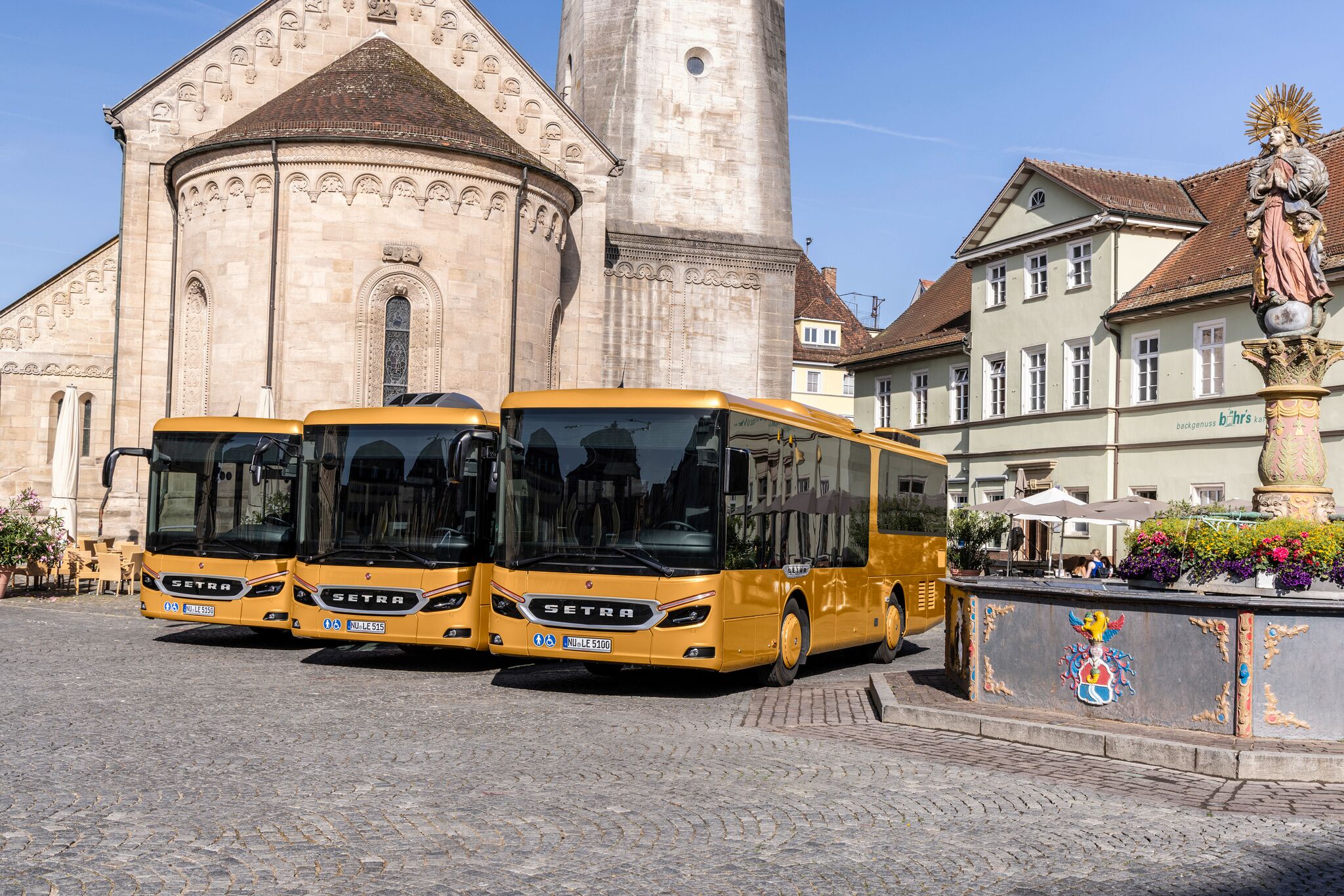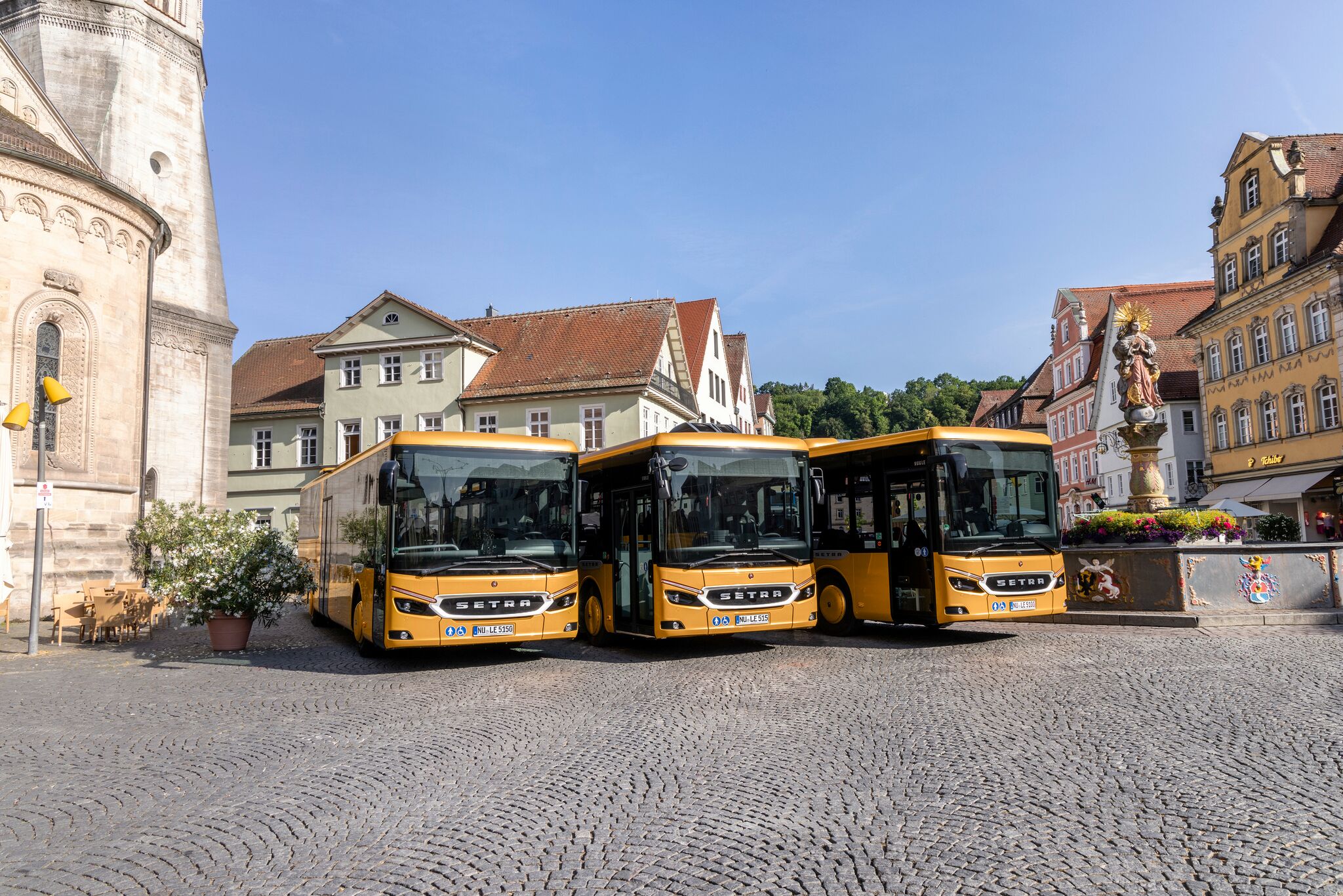 Schwäbisch Gmünd (sv/tm). Der Neu-Ulmer Bushersteller Setra hat jetzt seine brandneu entwickelte und designte Reihe der Überlandbusse "Setra MultiClass 550 LE" vor der zauberhaften Kulisse des Stadt Schwäbisch Gmünd präsentiert. Fast eine Woche lang waren Fachjournalistinnen und -journalisten aus Deutschland und aus ganz Europa zu Gast im Hotel am Remspark, um drei der neuen Exemplare unter die Lupe zu nehmen - und sie auch bei Touren quer durch die Landschaft rund um Schwäbisch Gmünd, das Stauferland und die Dreikaiserberge Probe zu fahren.