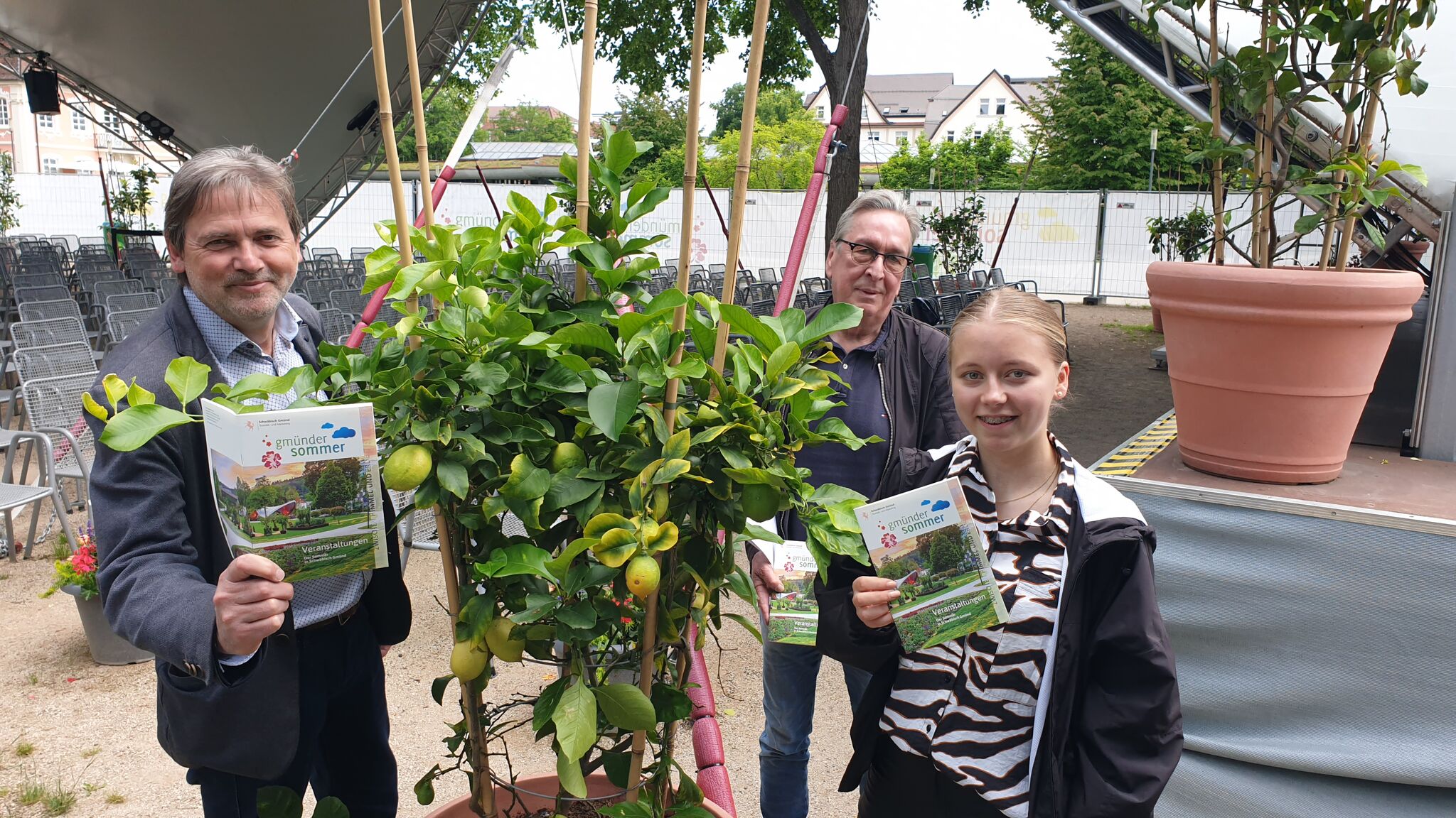 Markus Herrmann, Geschäftsführer Touristik und Marketing GmbH, Hans-Peter Spitznagel, Gmünder Sommer Veranstaltungsleiter und Paula Hoffmann, Auszubildende bei der Stadtverwaltung.