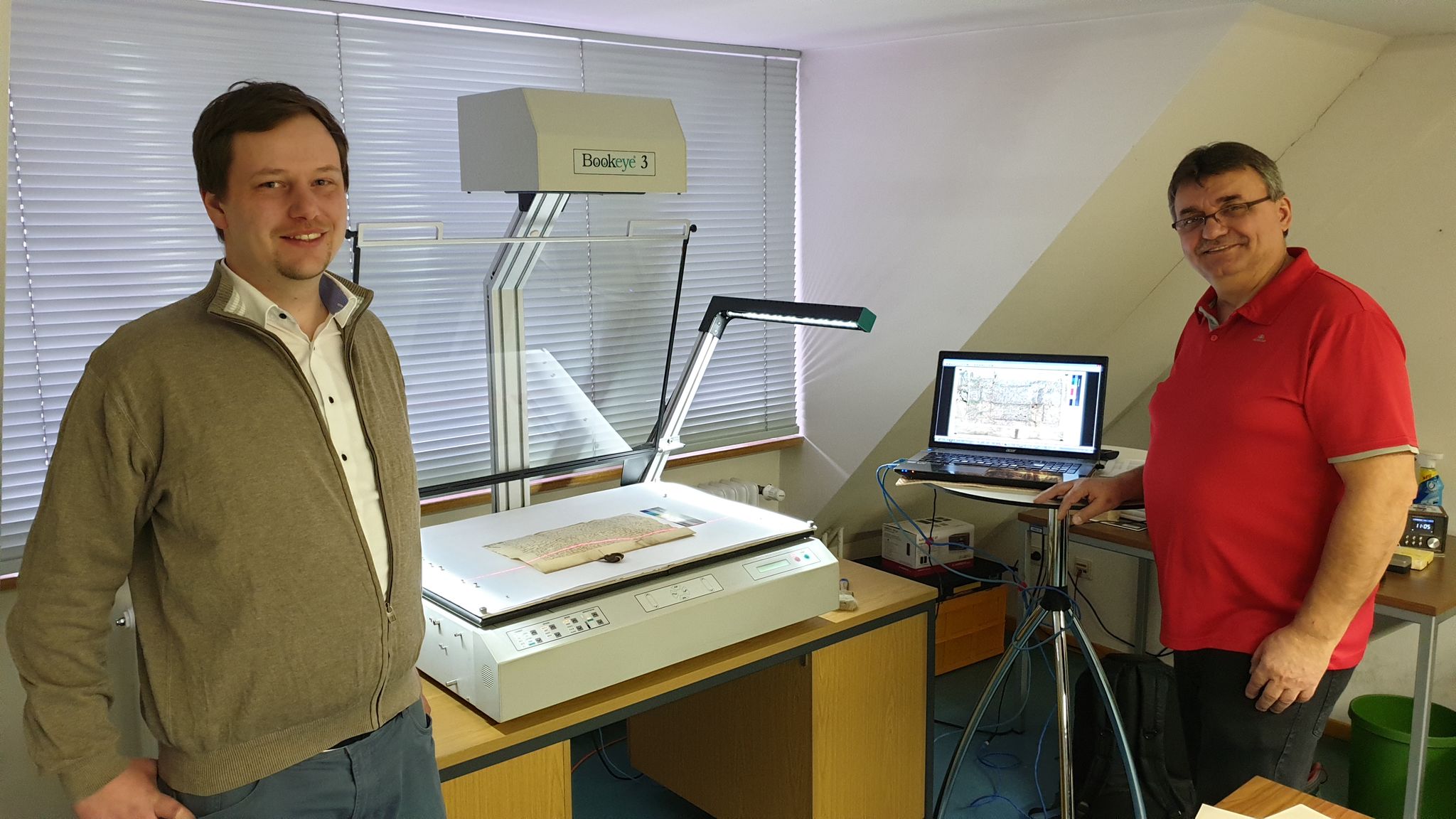 Schwäbisch Gmünd (sv). Dr. David Schnur, Stadtarchivleiter, gab zusammen mit dem Scanprofi Robert Reiter vom Verein ICARUS e.V. am Donnerstag, 14. Februar, Einblicke in die Welt der Digitalisierung von Pergamenturkunden. Mit einem mobilen Aufsichtsscanner ausgestattet werden noch hunderte von Gmünder Urkunden noch bis Ende Februar eingescannt. Der Verein ICARUS betreibt die zentrale Urkundenplattform: monasterium-net auf der derzeit bereits rund 600.000 Urkunden aus ganz Europa Online zur Verfügung stehen. Voraussichtlich Mitte des Jahres stehen die eingescannten Gmünder Urkunden ebenfalls digital auf der Onlineplattform und kann dann jederzeit ohne Gebühr aufgerufen werden.
