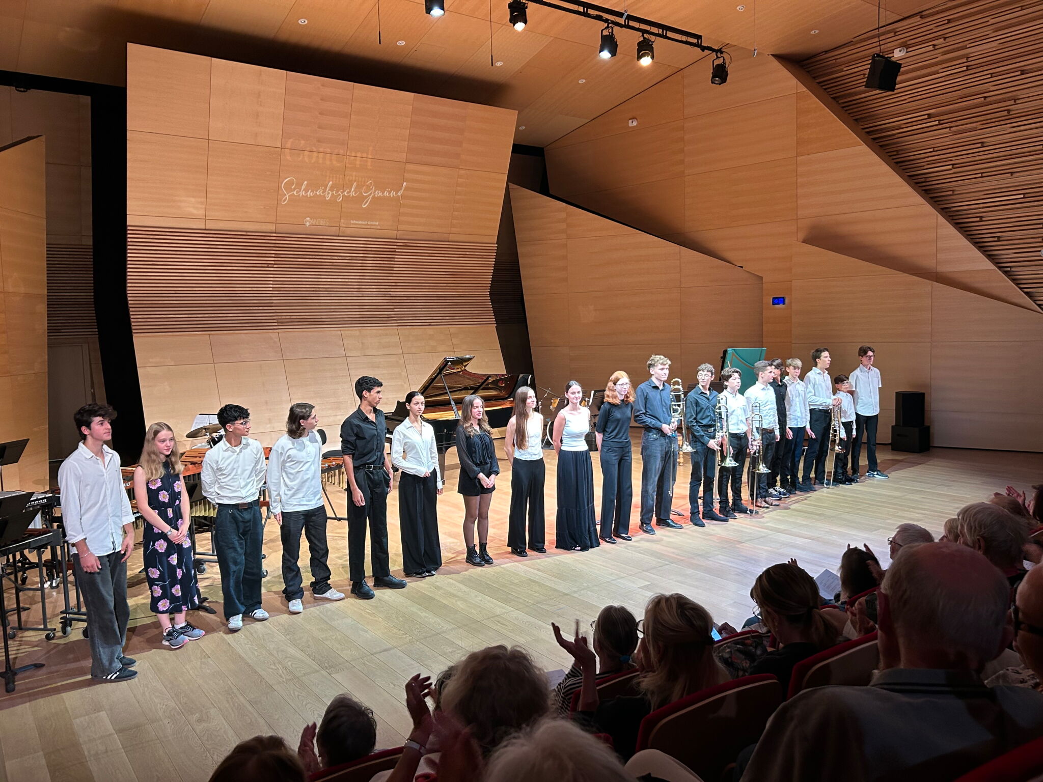 Vom neunten bis dreizehnten Oktober waren insgesamt sechs Schüler der Städtischen Musikschule inklusive Schlagzeuglehrer Rostislav Balciunas und Musikschulleiter Christian Wolf in der Partnerstadt an der französischen Riviera. Noel Bianchini, Direktor des dortigen Konservatoriums stellte gemeinsam mit seinem Team ein abwechslungsreiches und arbeitsintensives Programm zusammen. Neben den im erst drei Jahre alten, sehr beeindruckendem Neubau des Konservatoriums stattfindenden Proben, besuchte die Delegation ein Konzert des Orchestre de Cannes und das Konzert zum 20-jährigen Bestehen der Harmonie Junior. Außerdem gab es einen Glasbläserworkshop bei Didier Saba, eine Stadtführung in Antibes und einen Besuch im Village des Sciences im Palais des Congres et temps im Stadtteil Juan-les-Pins. Der Besuch endete mit dem traditionellen Partnerschaftskonzert am Sonntagmorgen, in welchem die Schüler Gabor Fahlberg (Gitarre), Hedda Brökelmann (Gitarre), Maike Pauline Wiemer (Klavier), Erik Heinrich (Posaune), Carl Philipp Essig (Klavier, Cembalo) und Fabian Uhlenbruck (Schlagwerk) gemeinsam mit den französischen Schülern beeindruckende musikalische Leistungen darboten, die vom Publikum im nahezu voll besetzten Auditorium Hector Berlioz mit langanhaltendem Applaus belohnt wurden. Musikschulleiter Christian Wolf bedankte sich bei Noel Bianchini, überreichte kleine Präsente aus Schwäbisch Gmünd und lud direkt zum Gegenbesuch vom 15. bis 19. Oktober 2026 nach Schwäbisch Gmünd ein. Die Einladung wurde noch vor Ort angenommen.