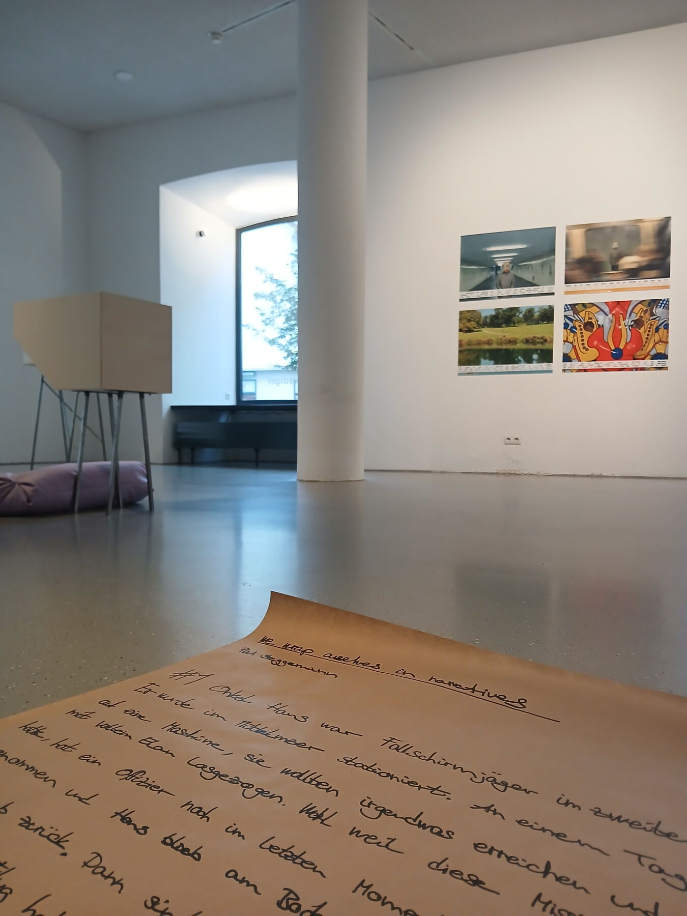 Über ihre formalen Strukturen hinaus dienen Märchen auch als Mittel, um sich mit menschlichen Ängsten, Sehnsüchten und Wandlungen auseinanderzusetzen. Nach Bruno Bettelheim kommen in Märchen „[...] die schweren inneren Spannungen des Kindes so zum Ausdruck, daß es diese unbewußt versteht; und ohne die heftigen inneren Kämpfe des Heranwachsens herunterzuspielen, bieten sie Beispiele dafür, wie bedrückende Schwierigkeiten vorübergehend oder dauerhaft gelöst werden können.” In den ausgestellten Werken werden Geschichten nicht nur einfach nacherzählt, sondern umgestaltet und neu erfunden, indem verblassende Erinnerungen in Gesten, Objekte und performative Handlungen übersetzt werden. Durch diesen Prozess setzen sich die Künstlerinnen und Künstler mit dem zarten Übergang zwischen Realität und Fantasie auseinander, lassen uns Ahnungen von schwer Fassbarem erhaschen.
