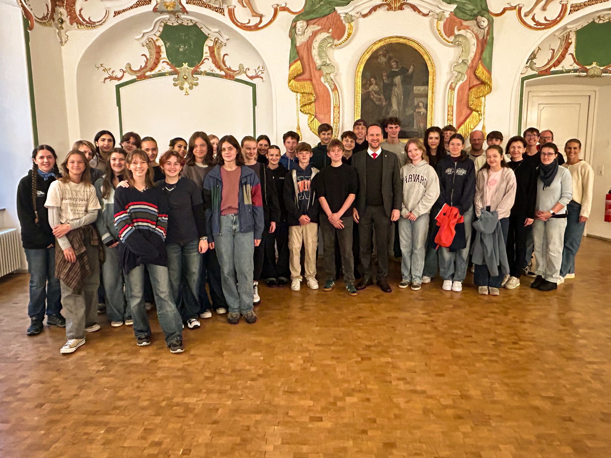 Schwäbisch Gmünd (sv). 16 tschechische Schülerinnen und Schüler gastieren aktuell im Rahmen eines Schüleraustausches am Hans-Baldung-Gymnasium in Schwäbisch Gmünd. Mit zwei Lehrerinnen kommen die Schülerinnen und Schüler aus der Hauptstadt Prag vom Gymnazium Na Pracazze in die Stauferstadt. Von Freitag, 19. September bis Freitag, 26. September erleben die insgesamt 32 deutschen und tschechischen Schülerinnen und Schüler ein buntes Programm. Am Montag, 22. September empfing Erster Bürgermeister Christian Baron die Beteiligten des Schüleraustauschs im Refektorium des Predigers. In seiner Ansprache an die Jugendlichen hob er besonders hervor, dass es in den Zeiten vieler Konflikte mehr denn je darum geht, länderübergreifend zusammen zu halten und Menschen aus anderen Ländern kennen zu lernen. Ein Schüleraustausch biete dazu eine sehr passende Gelegenheit.
