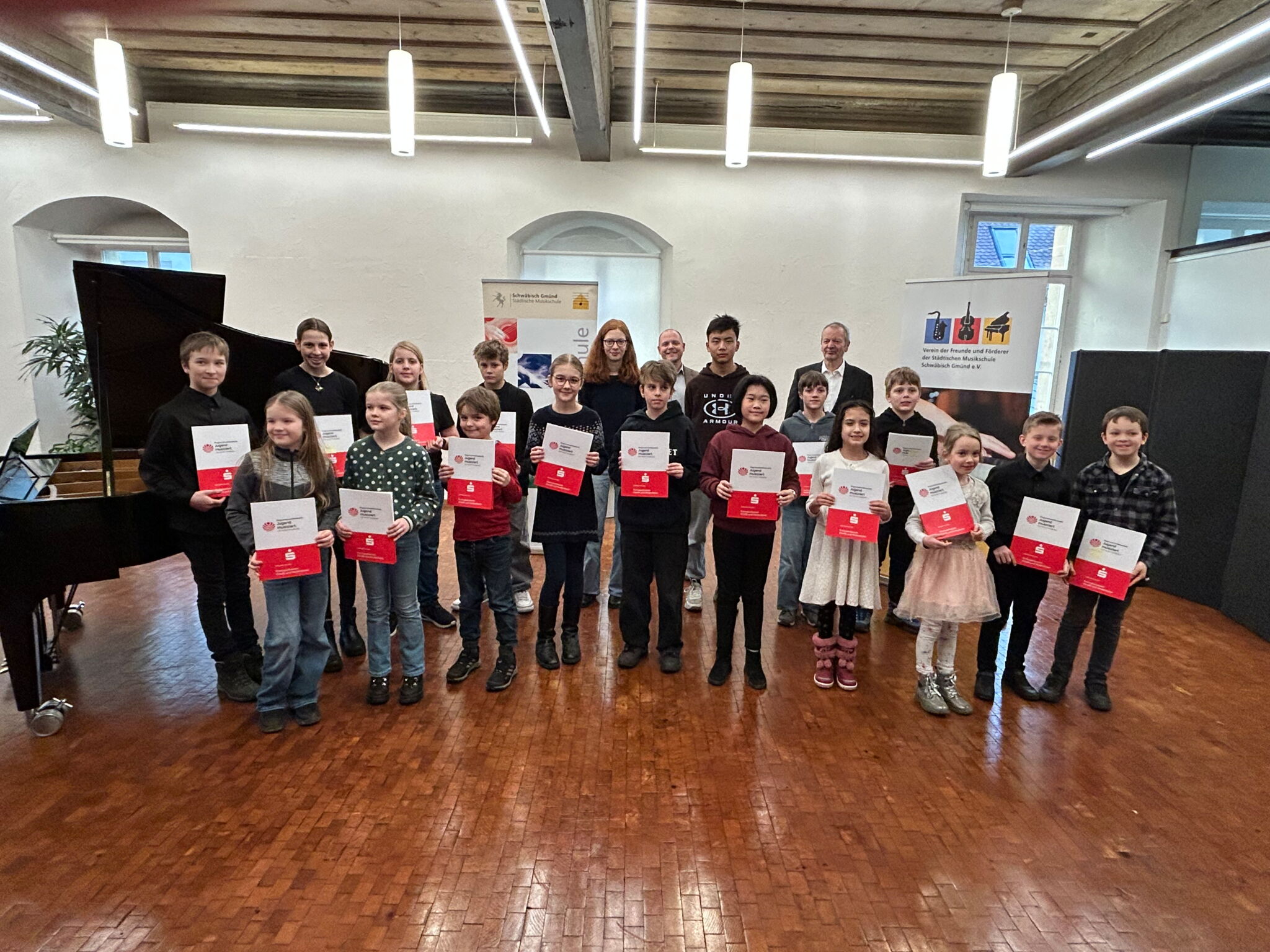 Schwäbisch Gmünd (sv). Strahlende Gesichter und verdiente Anerkennung prägten die feierliche Urkundenübergabe des Regionalwettbewerbs Jugend musiziert, die im Schwörsaal der Städtischen Musikschule stattfand. Musikschulleiter Christian Wolf überreichte die Auszeichnungen an die Teilnehmerinnen und Teilnehmer des Wettbewerbs und fand lobende Worte für den Einsatz aller Beteiligten: „Hinter jedem erfolgreichen Auftritt steht nicht nur intensives Üben, sondern auch die Unterstützung durch Eltern und Lehrkräfte. Dieses gemeinsame Engagement macht unsere Musikschule stark.“