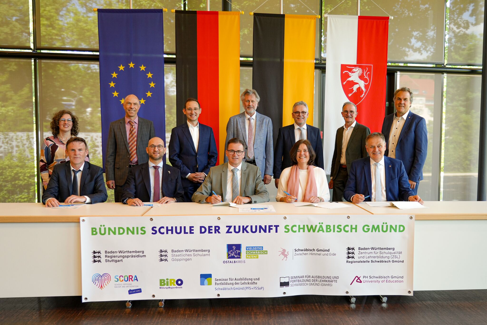 Die Kooperationspartner betonen die Bedeutung dieser Allianz: „Schwäbisch Gmünd ist der richtige Ort, um Bildung neu und weiterzudenken“, so Landrat Dr. Joachim Bläse. Auch der Gmünder Oberbürgermeister Richard Arnold sieht im Bündnis „die Chance den bildungspolitischen Diskurs auf regionaler Ebene zu stärken und durch die gemeinsame Initiative Impulse in der schulischen Bildung zu senden.“ Rektor Prof. Dr. Sabla-Dimitrov von der PH Schwäbisch Gmünd hebt hervor: „Die Vereinbarung ist eine Art ‚Ermöglichungsplattform‘ für phasenübergreifende Arbeit und innovative Kooperation.“ Ergänzend pflichtet Heike Petersen vom Regierungspräsidium bei: „Das Regierungspräsidium Stuttgart steht zuverlässig an der Seite des Bündnisses Schule der Zukunft in Schwäbisch Gmünd. Wir begrüßen es sehr, dass alle Beteiligten der schulischen Bildung in Gmünd sich gemeinsam auf den Weg machen, die Weichen für die Schulen so zu stellen, dass alle Kinder und Jugendliche ihr Potenzial bestmöglich entfalten. So können die Kinder und Jugendlichen durch Bildung unterstützt werden – für ihr eigenes und das gesellschaftliche Leben. Das ist die beste Grundlage für den Erhalt unserer Demokratie.“