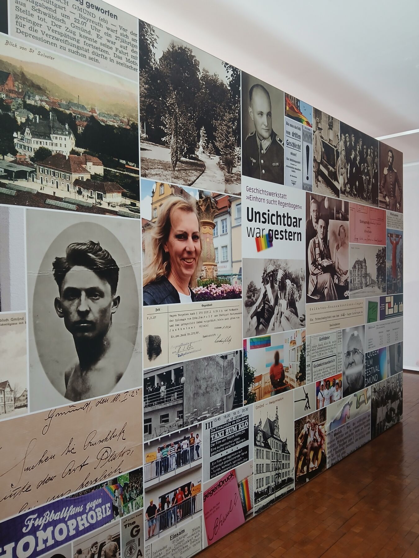 Die Sichtbarkeit, auch in der Kunst, ist jedoch stark von den geschichtlichen Entwicklungen abhängig. Auf diese fokussiert der Ausstellungsbereich „Geschichte“ entlang von Biographien aus der Region. Queere Gmünderinnen und Gmünder werden vorgestellt, ihre Situation und ihre Lebenswelten. Lokale Emanzipation von LSBTI* ist ohne weltweite Vorbilder und deren Sichtbarkeit nicht denkbar.