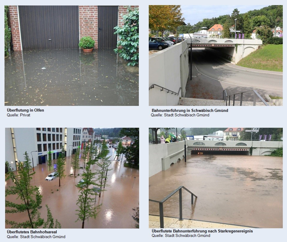 Seit dem Starkregenereignis im Sommer 2016 in Schwäbisch Gmünd sind die Bürgerinnen und Bürger auf das Thema Extremwetter aufmerksam geworden. Viele erinnern sich an überflutete Keller, Unterführungen und Straßen. Durch tatkräftige Unterstützung von allen Seiten war es möglich die Folgen zu beseitigen. Dennoch sind die meisten Städte nicht auf ein Starkregenereignis vorbereitet. Zudem steigt die Wahrscheinlichkeit von Wetterextremen durch den Klimawandel. Deshalb stellt sich die Frage, wie die Betroffenen vor Starkregen geschützt werden können. Aus diesem Grund beteiligt sich die Stadt Schwäbisch Gmünd am Forschungsprojekt RESI-extrem.