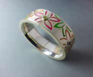 Vorwiegend arbeite ich mit Silber und Edelsteinen. Inspiriert durch die Farben und Formen der Natur, mit ihrer bunten Vielfalt an Blüten, Früchten, Blättern, vielfältigen Strukturen, nehmen sie nachhaltigen Einfluss auf die Formensprache meiner Schmuckstücke.