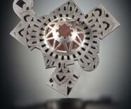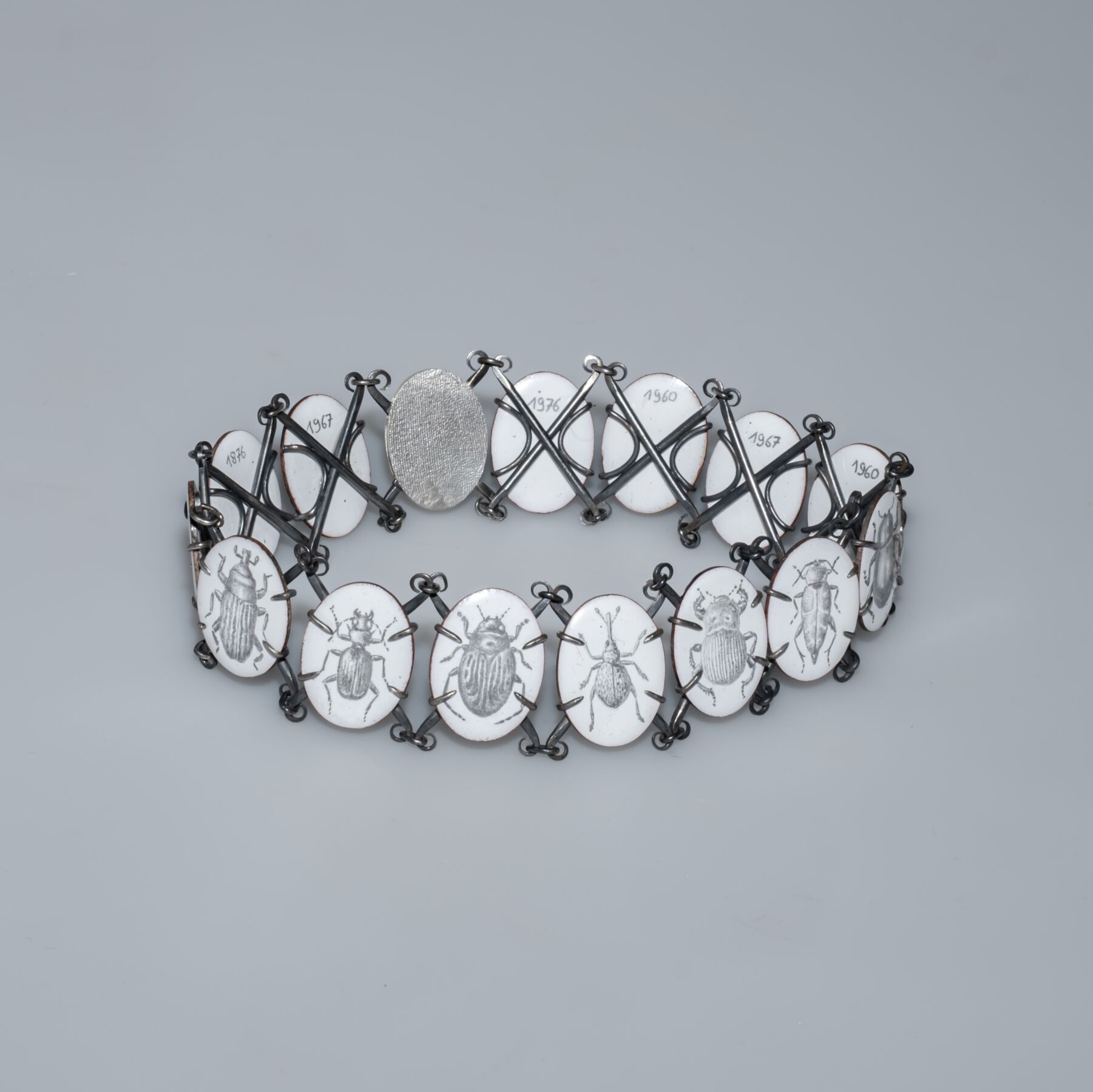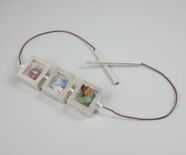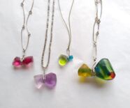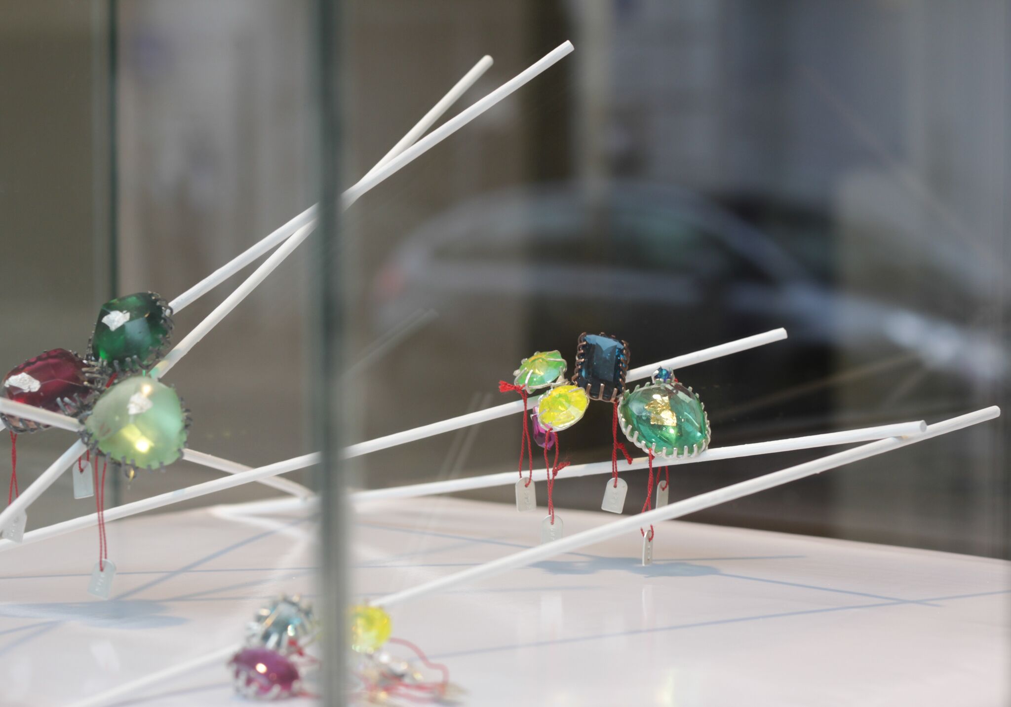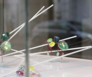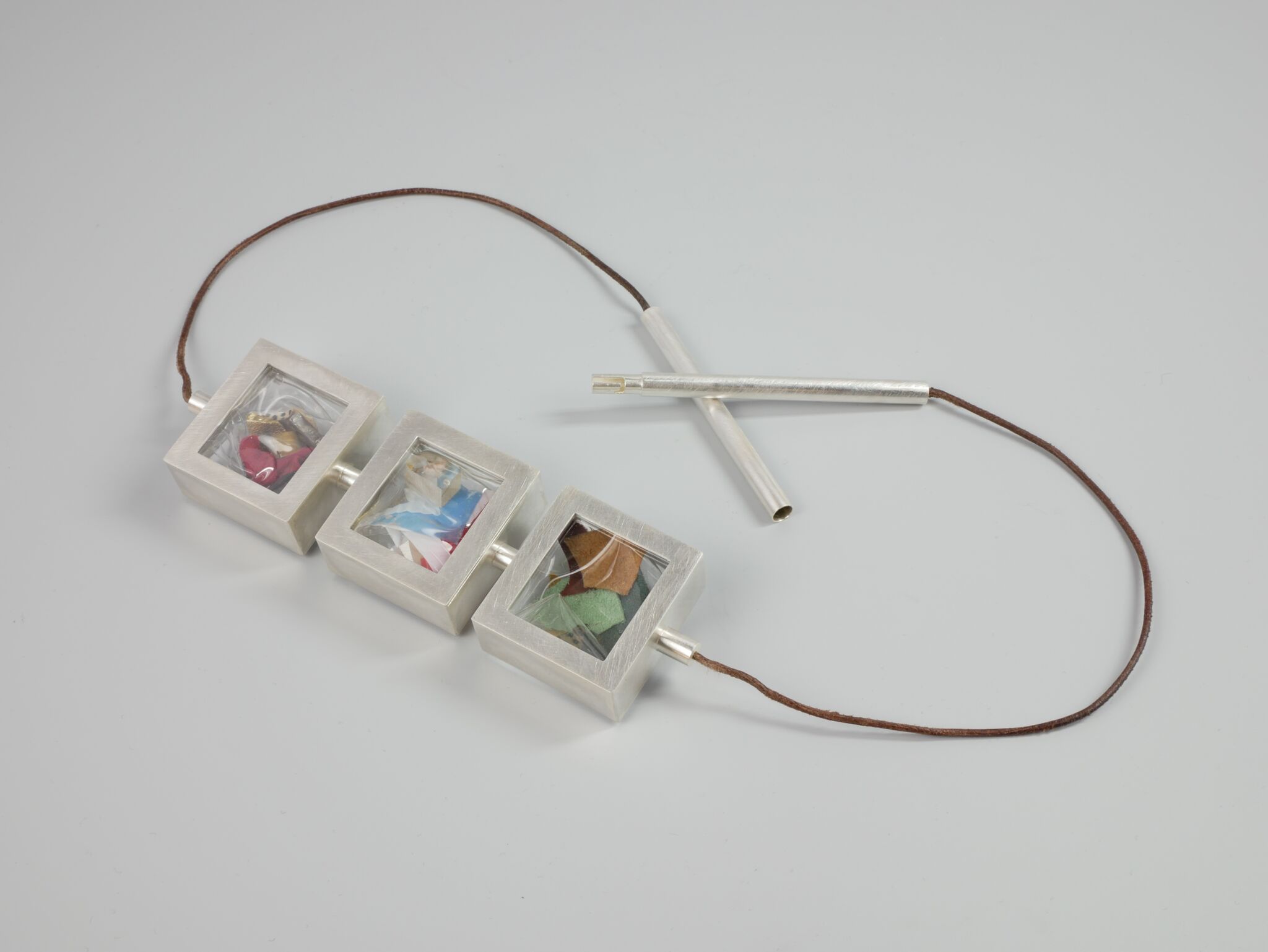 Daneben zeigt die Glas- und Schmuckgestalterin Colliers mit historischen Elementen. Verfremdet und in zeitgenössischen Kontext gestellt, werden die vorhandenen Teile narrative Zitate.