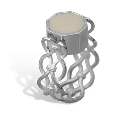 Eine weitere Besonderheit ist die Verarbeitung feiner Edelmetalldrähte zu unterschiedlichen Geflechtbildern in der "Fantasy"-Kollektion, die je nach Betrachtung eine andere Aussage erhalten; - gerade durch das interessante Spiel von Lichtreflexion und matter natürlicher Oberfächenveränderung.