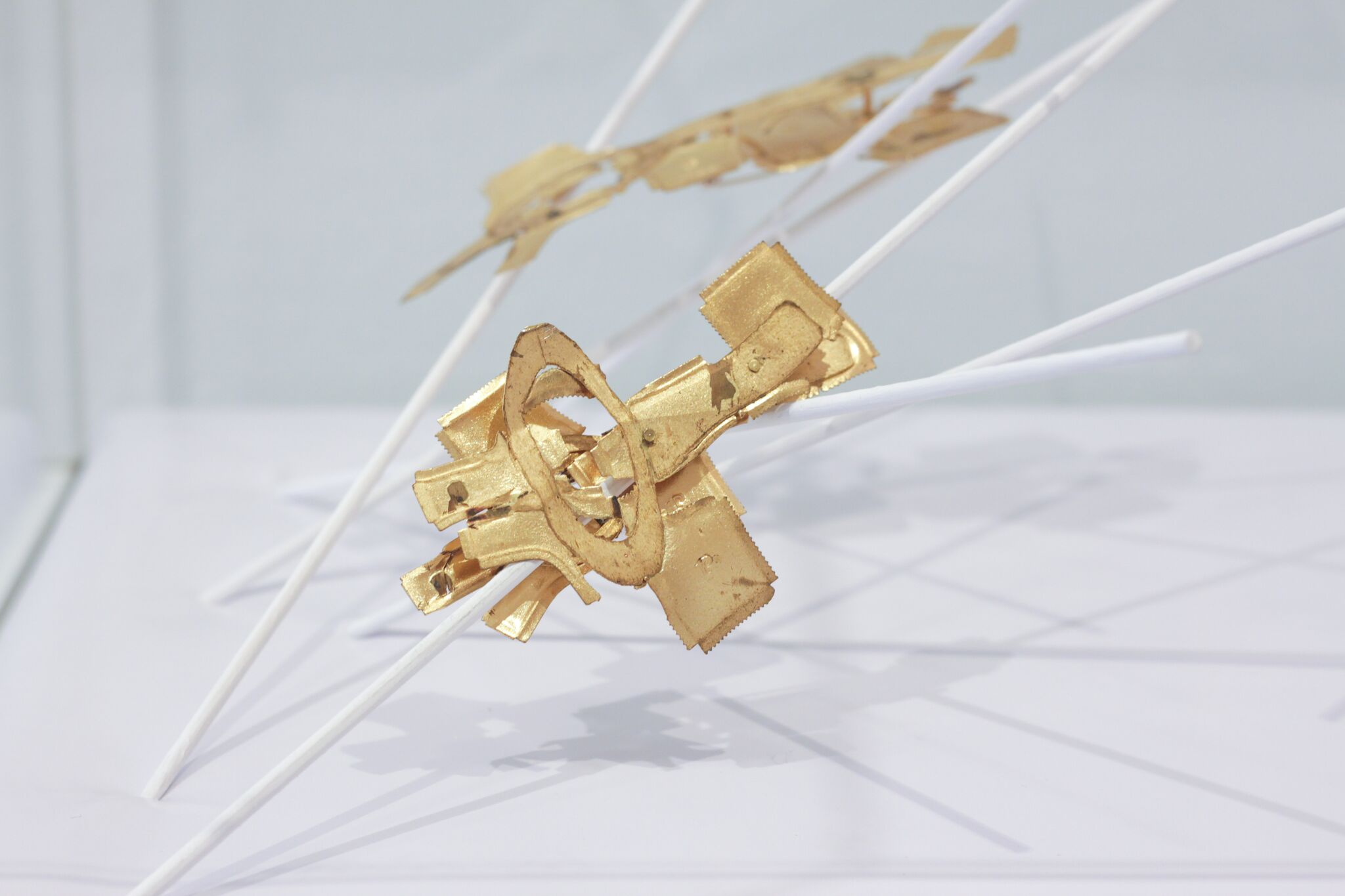 Beispiele hierfür sind die "Move"-Ringe und /-Ketten mit floralen stilisierten Formen, die im Spannungsfeld zwischen Schmuck und Bewegung der Träger*in diese in neue dynamische Ausrichtungen bringen.