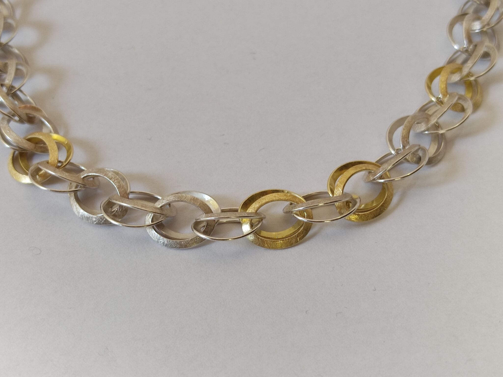 Im Moment konzentriere ich mich auf eine alte Walztechnik die ich in meinem Schmuck integriere. Wechselnde Ausstellungen in meinen Räumen bieten anderen Künstlern eine Plattform.