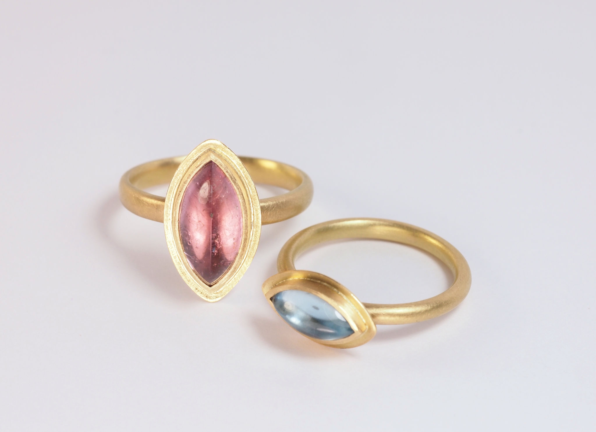 Mit traditionellen Goldschmiedetechniken entstehen einfache organische Formen. Handwerkliche Kompsitionen mit einzigartigen Texturen machen so jedes Schmuckstück zum Unikat.