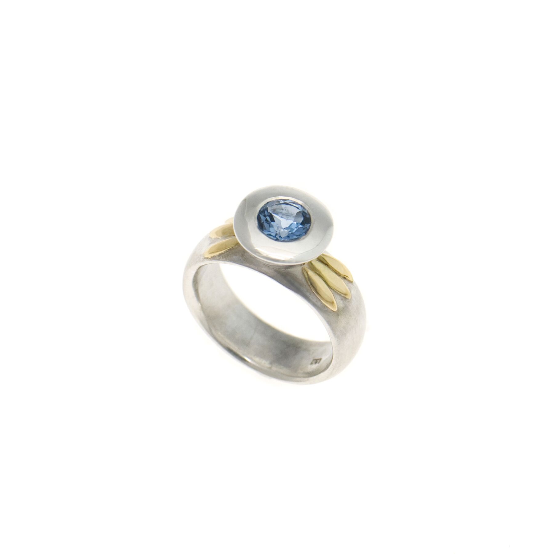 Ring "Kornblume" Silber-Gold mit Aquamarin