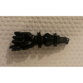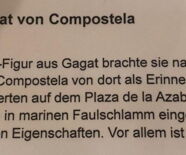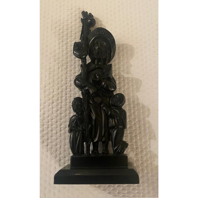 Die Jakobus-Figur aus asturischem Gagat wurde bei einer Pilgerreise in Santiago de Compostela erworben; weitere Informationen siehe entspr. Bild/Foto; Hinweis: die Spitze des Stabes musste nach Abbruch wieder angeklebt werden.