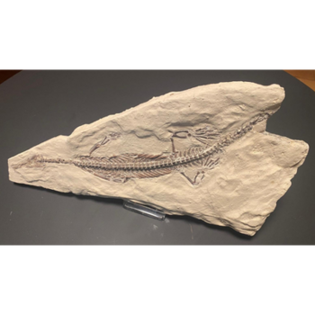 Es handelt sich um einen rund 185 Millionen Jahre alten Asteroceras-Ammoniten, ein "Sternhorn" aus dem Unterjura; mit einem Durchmesser von 530 mm gehört er zu den größten Jura-Ammoniten; weitere Informationen siehe entspr. Bild/Foto.