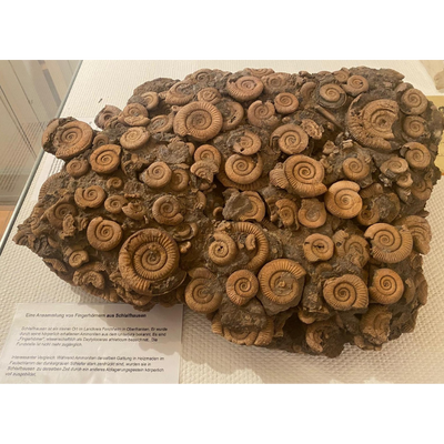 Die Ansammlung von Fingerhörnern stammt aus Schlaifhausen im Landkreis Forchheim in Oberfranken. Schlaifhausen wurde durch seine körperlich erhaltenen Ammoniten aus dem Unterjura bekannt. Die Fingerhörner werden wissenschaftlich als „Daytylioceras athleticum“ bezeichnet.