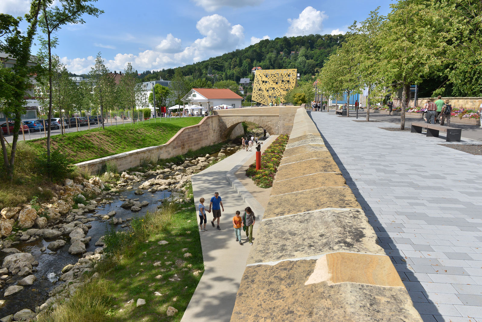 So gibt es vieles zu entdecken in dieser Stadt „zwischen Himmel und Erde“: Den Landschafts- und Familienpark „Himmelsgarten“ auf der Hochfläche bei Wetzgau zum Beispiel, der die großen und kleinen Besucher mit einem atemberaubenden Blick vom über 38 Meter hohen Holz-Aussichtsturm „Himmelsstürmer“ auf den Albtrauf begeistert. Die mutigen Besucherinnen und Besucher erklettern dort im „Skypark“ die Baumwipfel und überqueren tiefe Waldklingen, während die Kleinen ungestört am großen Wasserspielplatz planschen und Floßfahren können. Im Besuchergarten des Naturkosmetik- und Heilmittelherstellers Weleda kann man nicht nur in die spannende Welt der Heilpflanzen eintauchen, sondern auch in Workshops seine eigene Cremen-Kreation herstellen.