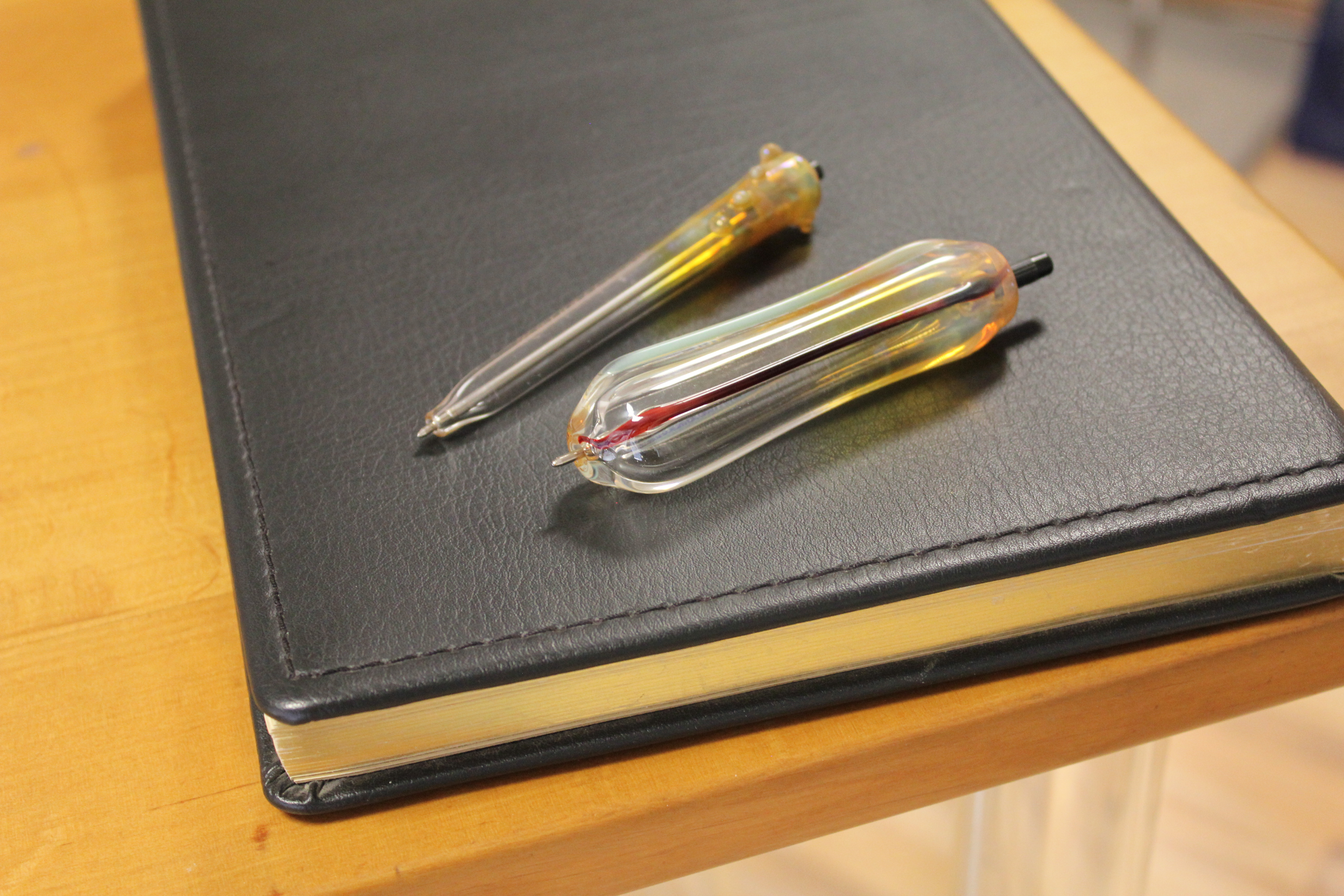 Der Glaskünstler Bernhard Meyer-Geugis kreiert feinsinnig gestaltete Unikate aus Glas, darunter Kelche, Schalen, Glaskugelschreiber und Parfümflakons.